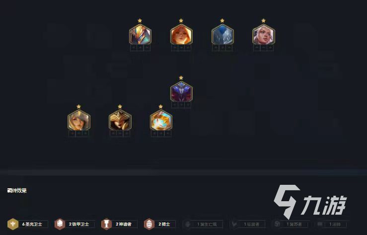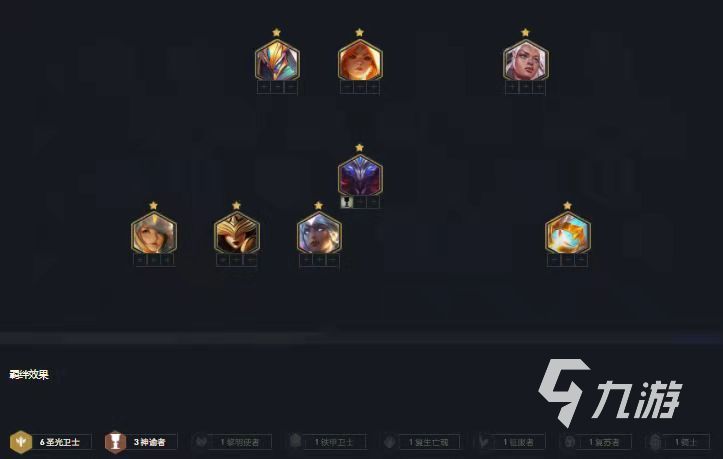 圣光衛(wèi)士體系,因為4神諭的收益不高,并且需要提莫這樣的生命值卡,所以選擇和小菊湊出2神諭者即可。多出的人口湊出2鐵甲衛(wèi)士和2騎士的兩個群體羈絆,收益明顯高于4神諭者。要是玩家拿到了神諭或者圣光的轉(zhuǎn)職書,方可考慮6圣光4神諭的羈絆,4神諭相當于給辛德拉多上了一把青龍刀 。