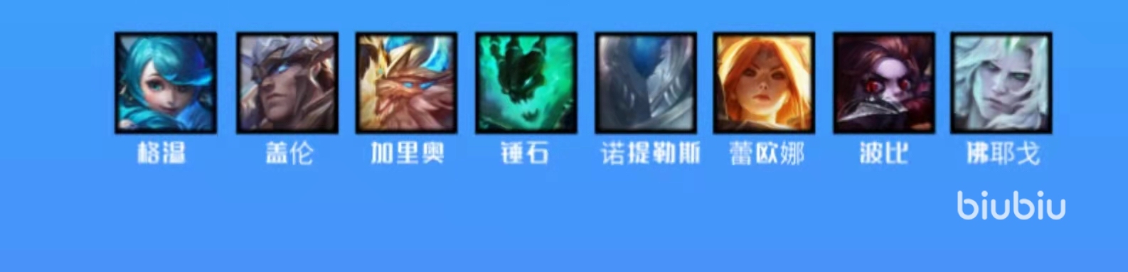 德瑪、加里奧、日女、格溫、泰坦、佛耶戈、錘石、波比