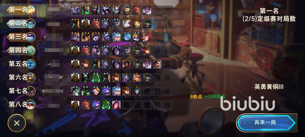 3、在到達3—2的時候就可以升6人口了,此時也能抽一波牌來提升一下隊伍得質量。不需要太高的強度,保證有3個辛迪加和4個刺客組合就夠了,還是要繼續(xù)存一定的利息。