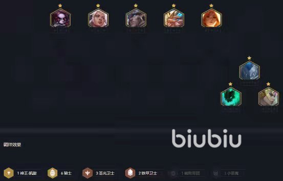 天使作為單核體系陣容的主C,但是陣容難度在于如何撐到天使后期進(jìn)化。因?yàn)樘焓谷张瑸槭ス庑l(wèi)士英雄,所以我們在為天使湊出圣光衛(wèi)士羈絆的同時(shí)利用好日女騎士的身份,直接湊出6騎士的羈絆。6騎士羈絆可以為所有友軍提供70的傷害減免,這樣前排越能抗,天使的輸出環(huán)境越好,撐到后期進(jìn)化就是輕輕松松。并且第三位圣光衛(wèi)士我們選擇芮爾,芮爾可以和騎士泰坦湊出2鐵甲衛(wèi)士,提升所有友軍的護(hù)甲。芮爾作為前排,6騎士羈絆的收益也很高。最后芮爾和加里奧等騎士英雄還有非常不錯(cuò)的控制效果,進(jìn)一步保證天使的輸出環(huán)境。
