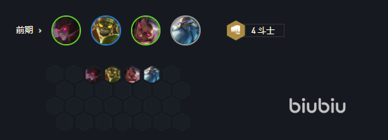 開局階段可以用黎明斗士來過渡,酒桶、豬妹、吸血鬼和星媽,這套組成觸發(fā)了多種羈絆。升級人口后加入努努、瑟提等斗士英雄,可以組成4斗士羈絆,在拿到復蘇者轉(zhuǎn)職道具后,再加入洛即可組成4復蘇者羈絆。努努的三星在7人口和8人口時搜,這時候3費英雄的搜卡概率更高,最后在8人口搜出狗熊、大頭等5費英雄后,陣容成型。這套陣容極其依賴轉(zhuǎn)職書,所以玩家在沒有辦法獲取轉(zhuǎn)職書的時候慎玩。