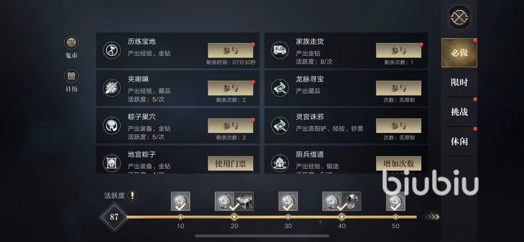 首先新盜墓筆記有著極其豐富的日常活動(dòng)等待大家完成,而其中官方給大家給所有任務(wù)做了集中處理,在“日程”里面,我們可以看到完成任務(wù)我們能得到什么樣的獎(jiǎng)勵(lì)。比如歷練寶地、夾喇嘛、家族懸賞、劇情粽子等等都是可以產(chǎn)出大量經(jīng)驗(yàn)獎(jiǎng)勵(lì)的。