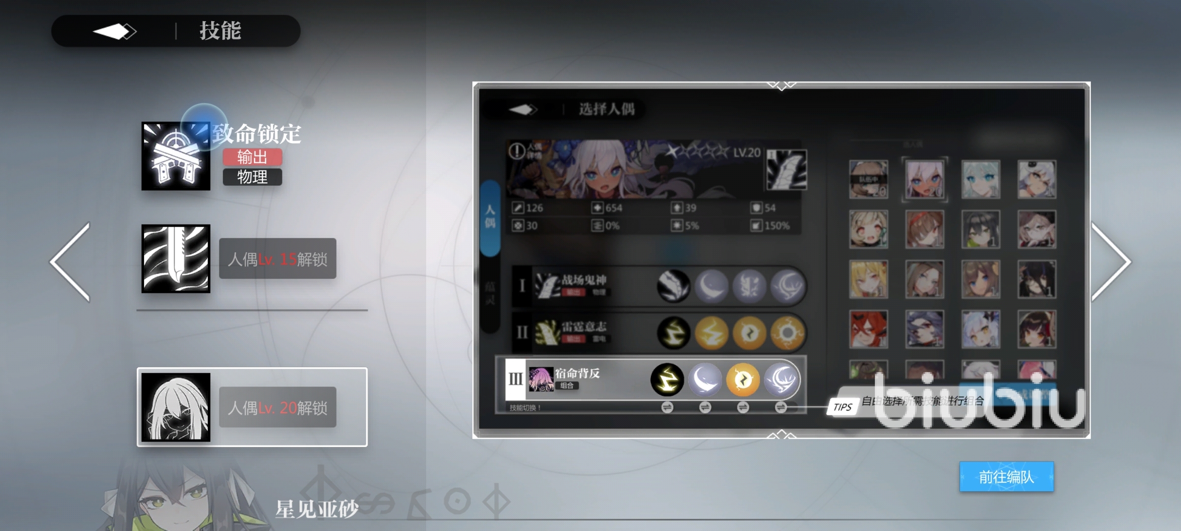 這個(gè)時(shí)候我們?cè)龠M(jìn)入正常的作戰(zhàn)界面會(huì)發(fā)現(xiàn)我們調(diào)整的人偶技能切換成了我們剛剛選擇的技能欄目。
