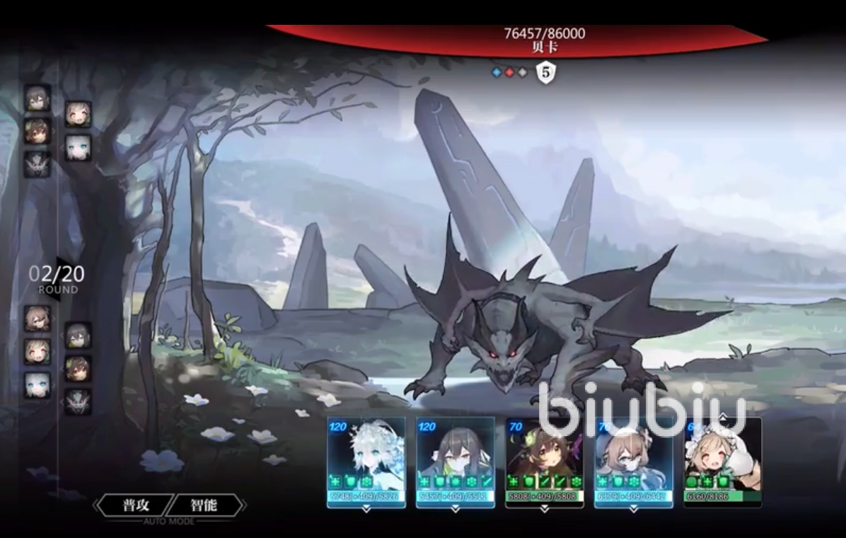 boss速度較慢(小于50),隊(duì)伍把南宮、雪兒調(diào)速到首位就行,因?yàn)橛屑缐匮?,默認(rèn)滿狀態(tài)開打。南宮按回合釋放20物,30火,80物,星見上buff接普攻,莉莉重砍,爭(zhēng)取2輪帶走。