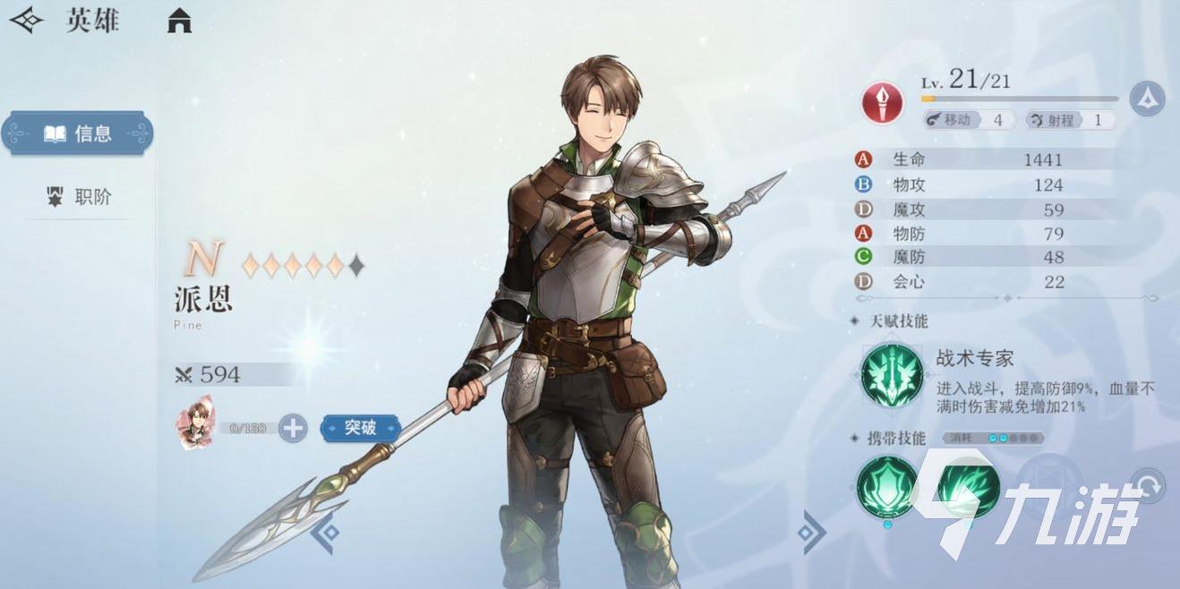 派恩是一名肉盾角色,適合放在隊伍前排來抵抗傷害和控制技能。派恩作為一名強力的護(hù)衛(wèi),擁有獨特的技能反擊,可以讓敵方的輸出原封不動的反擊回去,實現(xiàn)“自己打自己?!芭啥鳘毺氐奶熨x技能,使他再不是滿血的狀態(tài)下獲得傷害減免。所以在實戰(zhàn)中可以找好隊伍賣一賣血,讓他變得更加耐揍。