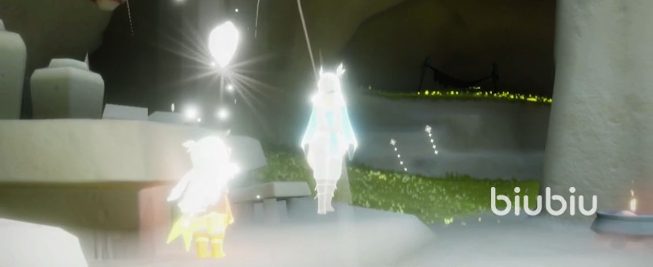 風(fēng)行向?qū)б簿褪俏覀儗iT領(lǐng)取任務(wù)的先祖在島嶼中間的山洞里面,旁邊的蠟燭是我們需要領(lǐng)取完任務(wù)之后祈福用的光圈。