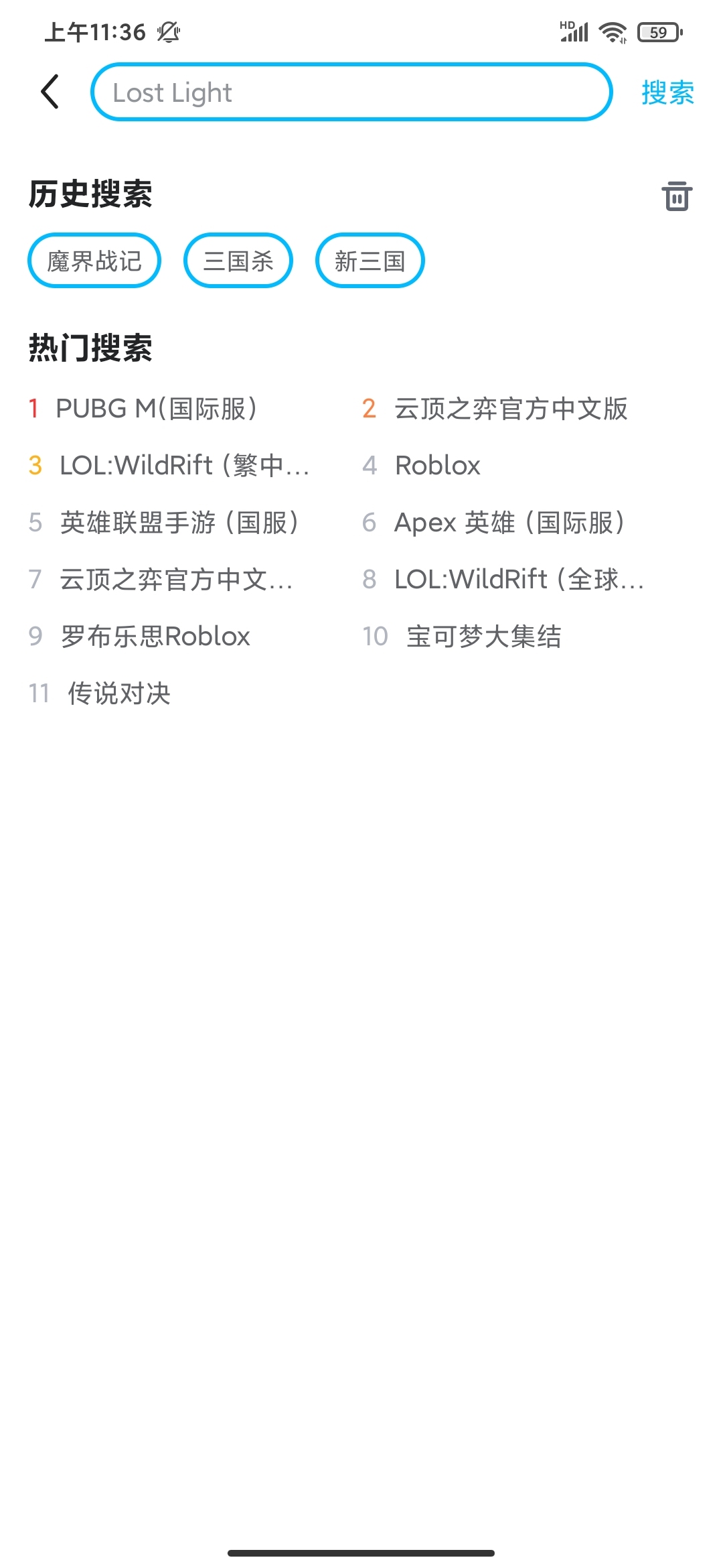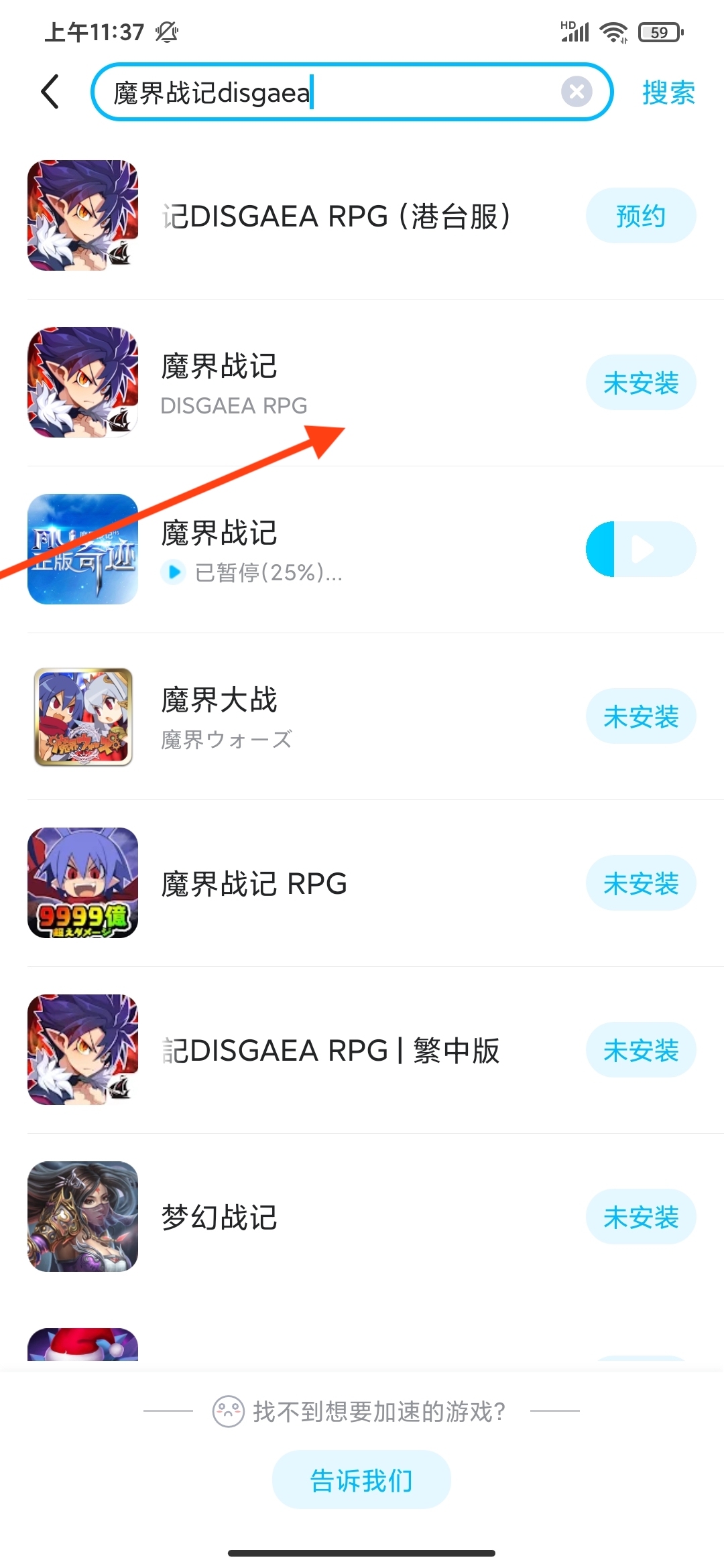 6、在彈出的相關(guān)游戲搜索結(jié)果中選擇下圖劃線的游戲,進(jìn)入游戲詳情頁面。