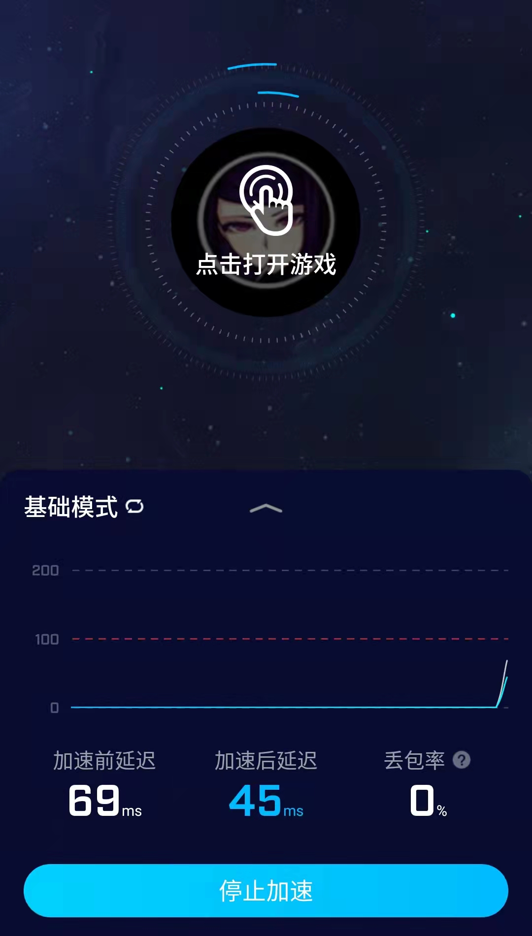 找到并點擊加速鍵以后,玩家會進(jìn)入加速游戲界面,界面上會顯示該游戲的延遲等數(shù)據(jù),大概僅需幾秒,玩家就可以完成加速。