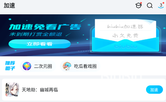 在進(jìn)行了第一次游戲加速之后,玩家如果還想加速這款游戲,只需要打開(kāi)biubiu加速器,找到這款游戲,點(diǎn)擊這款游戲旁邊的加速選項(xiàng),就可以在加速狀態(tài)下運(yùn)行這款游戲了。