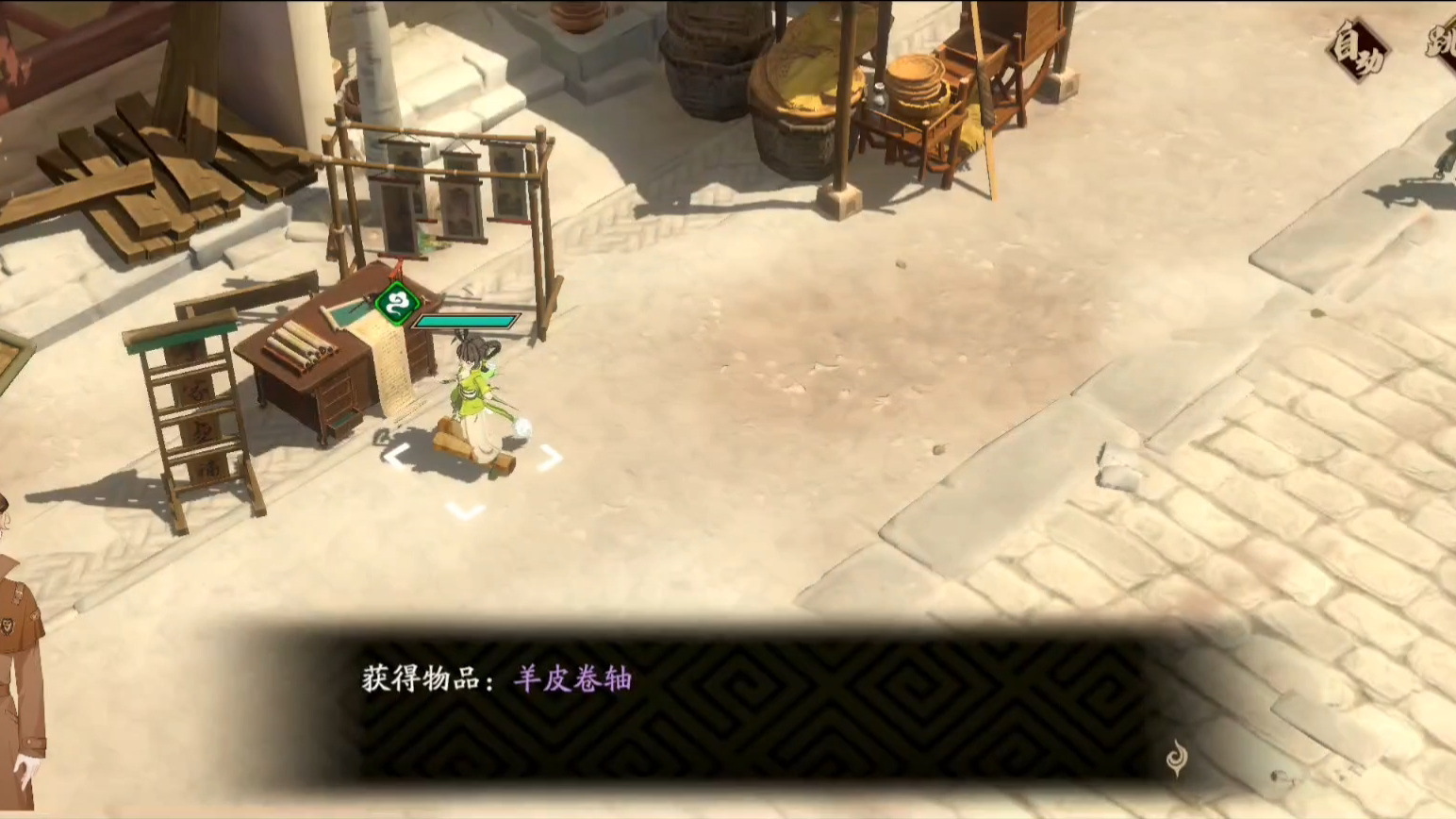 而這個(gè)任務(wù)的位置就在一個(gè)破敗的客棧的面前,周圍有一些人和一些攤位,只要和那些在門口的游客交談,就會(huì)以觸發(fā)獲取羊皮卷軸的劇情。這樣就會(huì)觸發(fā)任務(wù)山河志羊皮卷軸的委托。只要完成這個(gè)任務(wù)。就可以拿到稀有的羊皮卷軸了。