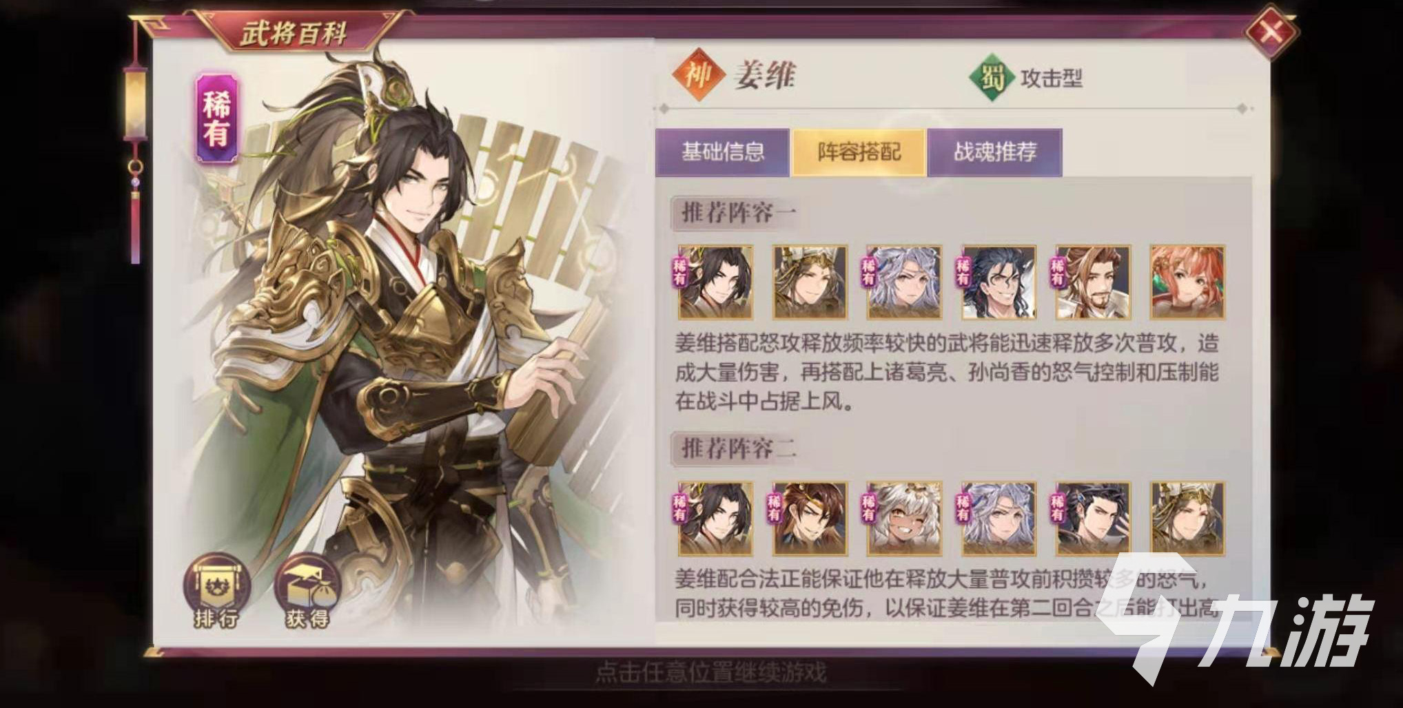 姜維在陣容中,通過怒攻技能釋放,帶來高頻率的普攻釋放,打出高額輸出,搭配諸葛亮、孫尚香,帶來怒氣控制、優(yōu)勢(shì)壓制,從而在戰(zhàn)斗中占據(jù)優(yōu)勢(shì)。姜維作為攻擊型武將,適合搭配破釜沉舟、長(zhǎng)驅(qū)直入的戰(zhàn)魂。