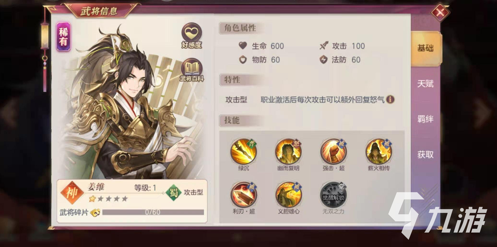 在這一陣容中,姜維技能特性最發(fā)揮出來,作為稀有級(jí)別的武將,它擁有良好的成長(zhǎng)性。姜維普攻打出100%攻擊,怒氣技能幽而復(fù)明,攻擊帶來怒氣加成,每一百點(diǎn)怒氣帶來15%攻擊力提升。