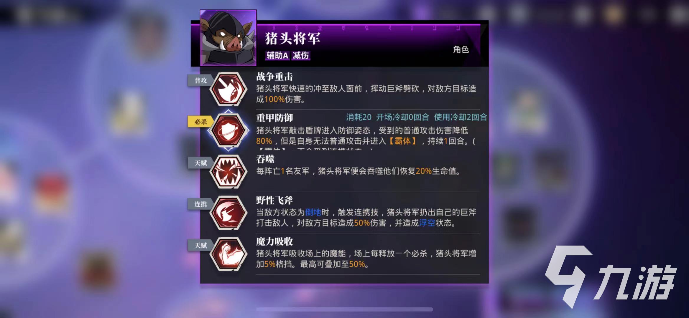 哥布林和我們的豬頭將軍都是減傷型人物,不一樣的是,哥布林是普攻A級(jí)人物,而我們的豬頭將軍是輔助A級(jí)人物,他們所帶的技能雖說招數(shù)不一樣,但技能也是差不多的都是一個(gè)普攻,一個(gè)必殺,兩個(gè)天賦,一個(gè)連攜,在這里小編建議如果兩個(gè)人物都有的話還是要選擇豬頭將軍哦(沒有別的原因,就是因?yàn)樗姆烙?jí)高,在前排可以幫助我們抵擋傷害)