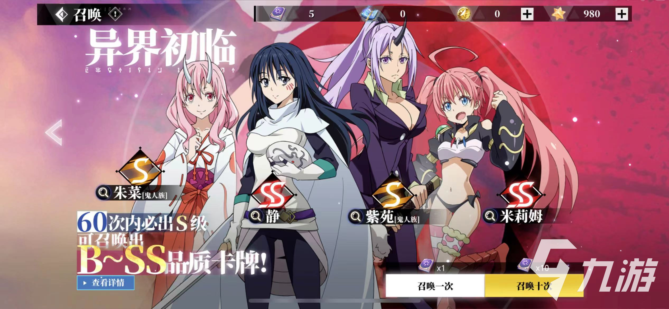 召喚難度可以說是非常有難度了,58次內(nèi)必能召喚出S級別的人物,從B到SS級別的品質(zhì)卡牌,但是玩家們不要灰心呦。