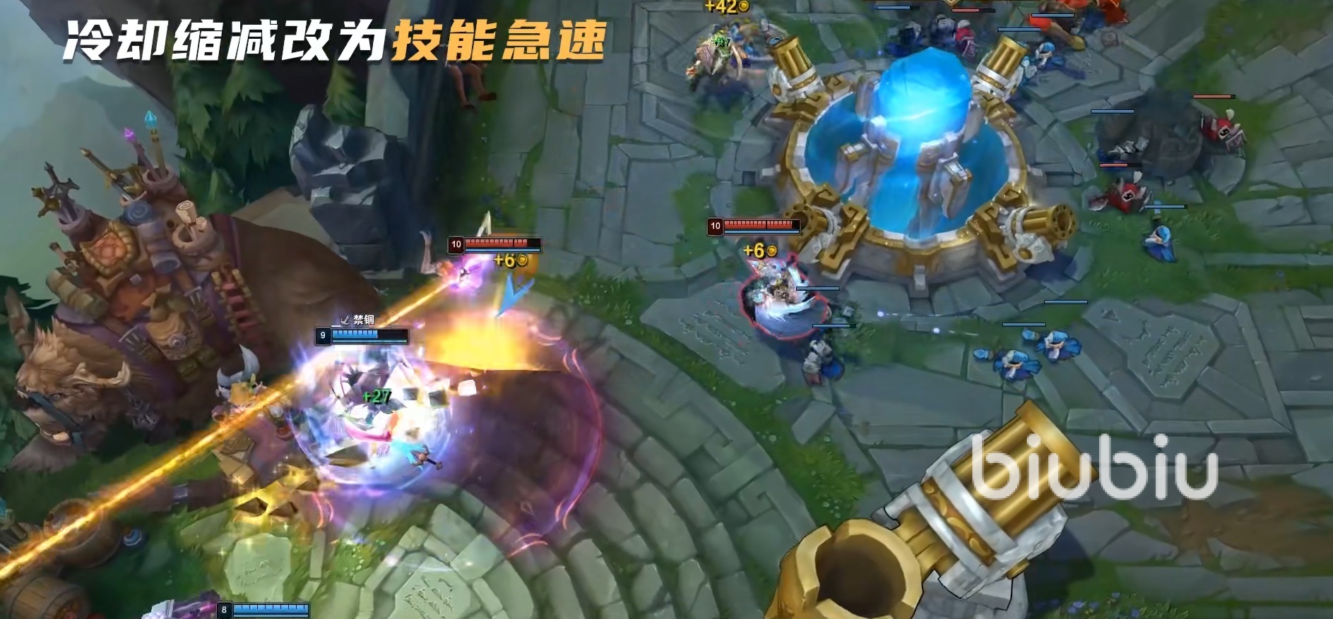 本次版本更新后將正式上線無(wú)限火力模式,那這個(gè)模式和普通匹配模式主要區(qū)別在哪呢?總的來(lái)說(shuō),無(wú)限火力模式的游戲節(jié)奏會(huì)比一般匹配模式快很多,主要是由于在無(wú)限火力模式下,召喚師的技能冷卻時(shí)間會(huì)減少,攻擊速度增加,法力值無(wú)限還有能夠快速支援的加農(nóng)炮。