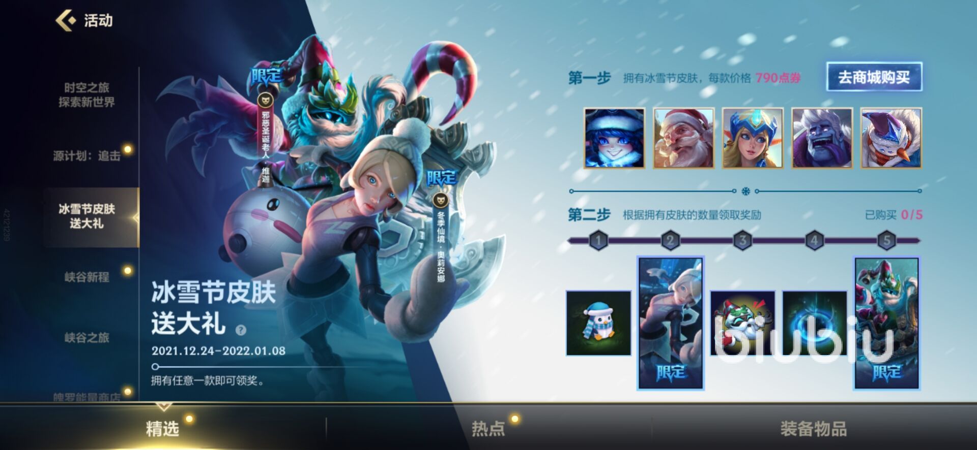 首先的話,就是冰雪節(jié)的活動了,小伙伴們?nèi)绻銚碛兄┕?jié)其中的皮膚的話,那么就可以根據(jù)你所擁有的冰雪節(jié)皮膚數(shù)量來獲取其他的一些獎勵,可以獲取限定皮膚:冰雪節(jié)發(fā)條和冰雪節(jié)小法師,這兩個皮膚只有通過這個活動才可以獲得,除此之外,是可以獲取到限定的冰雪節(jié)頭像和表情的。