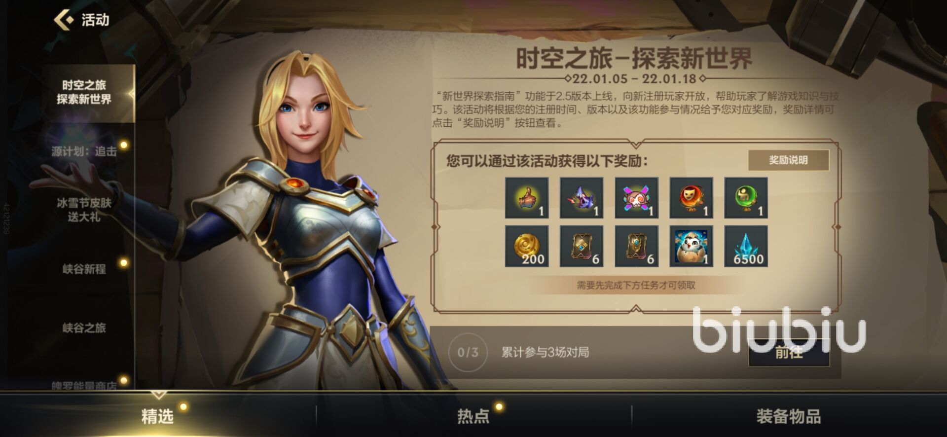 時空之旅活動是可以獲得比較多的道具的,這個活動主要針對于新注冊的玩家開放,朋友們可以在這個活動中獲得表情,英雄自選法球,皮膚自選法球,藍(lán)色精粹和等級雙倍加成卡,如果你想要入手這個游戲的話,那么通過這個活動是可以很快得到自己想要的英雄和皮膚的。
