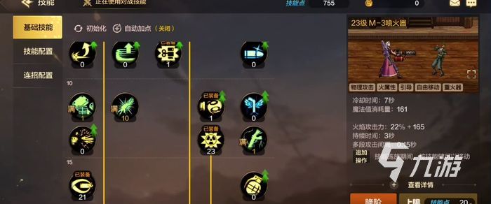 而這里滿了噴火器技能,這個(gè)技能雖然等級比較低,但是有被動(dòng)加成的情況下,輸出還是非常不錯(cuò)的,而且還是aoe類型的,cd短同時(shí)具備僵直效果,裝扮起來之后打小怪的效率極高,小伙伴們是可以直接點(diǎn)滿的。