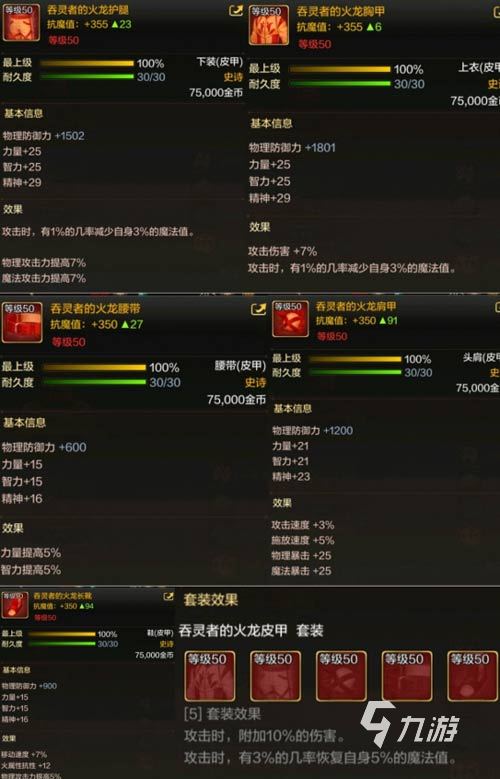 槍炮師在畢業(yè)裝備的選擇上,推薦吞靈者套裝,其效果就是,在攻擊的時(shí)候有百分之一的概率可以降低自己百分之三的魔法值,上衣以及下裝都具備這個(gè)效果;腰帶可以提升百分之五的力量以及智力;肩甲可以提升百分之三的攻速、百分之五的施法速度以及二十五的物理暴擊;長靴可以提升百分之的移速、百分之五的物理攻擊力以及十二的火系抗性;而整個(gè)套裝的話,則可以提供百分之十的額外增傷。