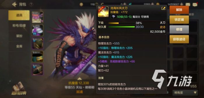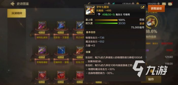 【子午七星劍】:這把武器的傷害實際上不遜于滄海系列的武器,大家可以看到有著降低敵人防御力的效果,同時提升30%的攻擊。不過缺點在于會減少自己的防御力,而且狂戰(zhàn)士本身暴走buff就會減少大量的防御力,導(dǎo)致大家在對戰(zhàn)的過程當(dāng)中,一旦吃到敵人的攻擊就非常容易撲街。
