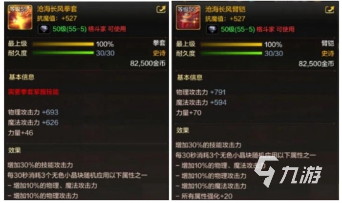 另一件武器拳套同樣也是增加這些屬性效果,但是數(shù)值不一樣,相較于臂鎧來說,拳套增加的物攻比較少,但是魔攻非常高,這就是兩種不同的輸出手段玩法不同造成的差異了,大家可以根據(jù)自己的習(xí)慣和玩法來進(jìn)行選擇。這兩件裝備都是可以通過挑戰(zhàn)羅斯特副本來掉落拾取的。