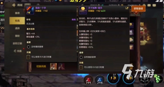 最后是氣功師的稱號選擇,可以使用【穩(wěn)就一個字】,能夠給我們帶來3%的移動速度加成以及44點的智力加成?!景Щ暝崴驼摺?,增加48點的力量和智力但是減少55點的物理防御力和魔法防御力,在攻擊的時候有概率會給敵人附加持續(xù)5秒鐘的流血效果?!驹孪陋毼杷隆浚軌蛟黾游覀兊纳瞪舷薏⑶覍?、冰、光、暗這四個屬性帶來而且還帶有10%的額外傷害加成,還是相當不錯的。