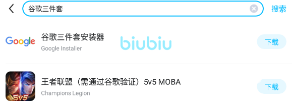 對(duì)于一些游戲來說,在完成了上述的這些步驟之后,游戲還是無法正常運(yùn)行,一般是因?yàn)槿鄙俟雀枞撞寮瑢?duì)于這個(gè)問題,玩家直接在biubiu加速器當(dāng)中搜索谷歌三件套,下載并安裝好就可以正常運(yùn)行游戲了。