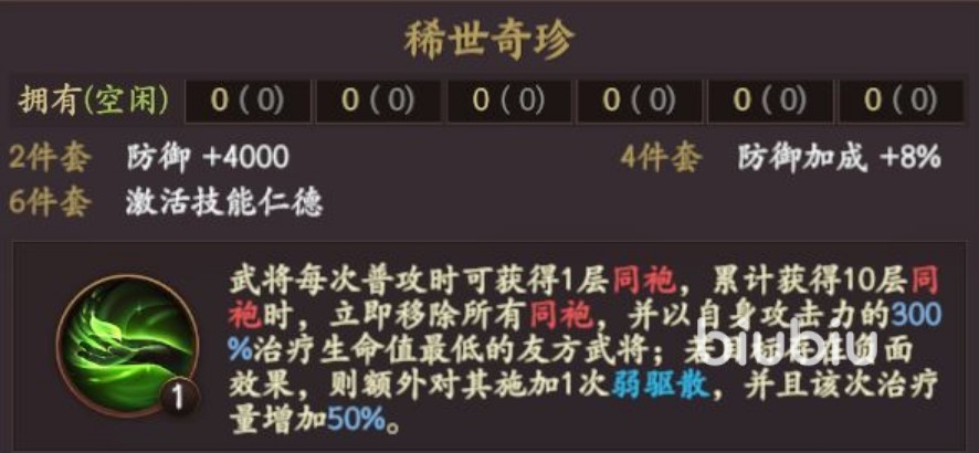 裝備選擇七寶和化雨,前者的效果為受到戰(zhàn)技攻擊時(shí),可以減少百分之四的全額傷害,如果對(duì)手兩回合內(nèi)沒有攻擊自己,還會(huì)給隊(duì)友增加百分之四的全額傷害加成,后者的效果是讓生命值最少的友軍獲得攻擊百分之七十五的治療量,這兩件裝備搭配后不僅可以增傷還能進(jìn)一步提升恢復(fù)效果,可以說是非常適配了。