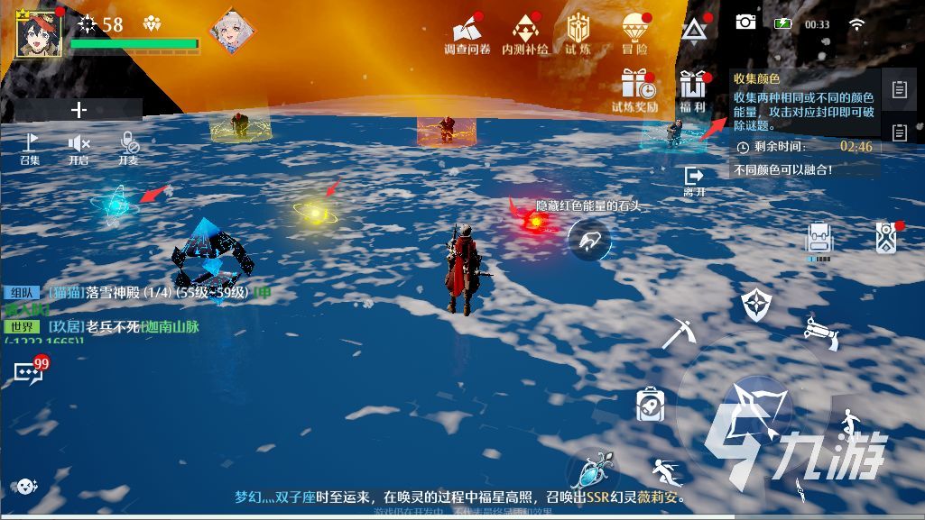 神秘寶藏這個活動玩法必須要角色級別到達五十九級才會解鎖,這時你們就可以和好基友一同匹配啦,當匹配成功后,你們會進入一個類似副本的地圖中,通過探測儀你們可以找到有概率掉藏寶圖碎片的敵人,擊敗他們獲得碎片。