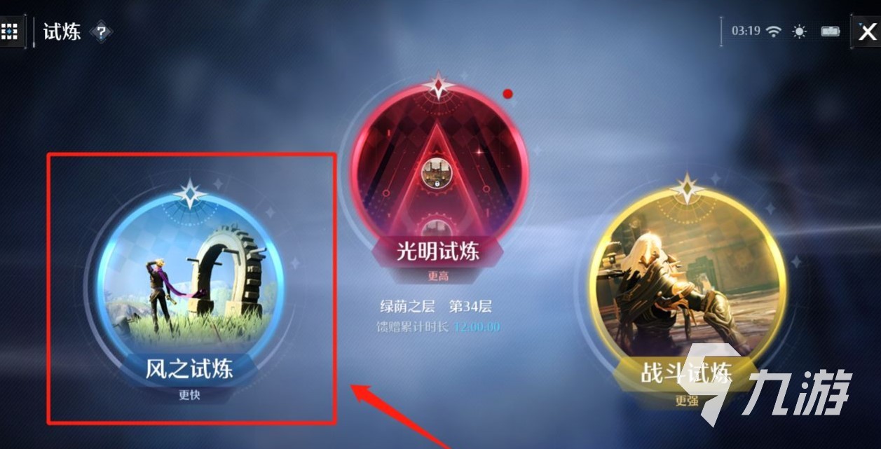 從游戲主界面最上方的“試煉”進(jìn)入,然后選擇最左側(cè)的風(fēng)之試煉,然后就可以從初級(jí)挑戰(zhàn)者開(kāi)始,進(jìn)行一步步挑戰(zhàn)。