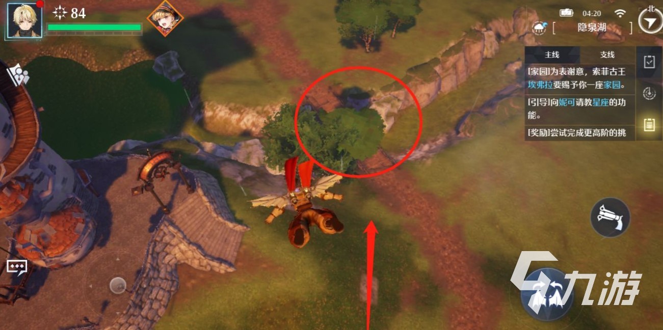 任務(wù)伊始,我們是在隱泉湖邊,而目的地則是在湖泊的對(duì)岸。因?yàn)椴荒苡斡?,所以只能繞著湖跑。這里我們推薦從初始點(diǎn)開(kāi)始后往右手邊的水車那里跑,走這邊繞著湖跑到對(duì)岸的距離最短。從左邊繞的話到森林那里過(guò)不去的,而且挑戰(zhàn)不能下水。