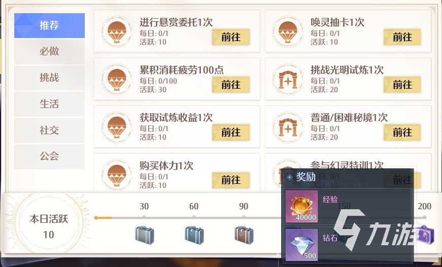 本日活躍達(dá)到200點(diǎn)(做滿)可以得到800鉆的獎(jiǎng)勵(lì),還是很豐厚的哦。當(dāng)然不做滿也有一些鉆石獎(jiǎng)勵(lì),60活躍對(duì)應(yīng)100鉆,120活躍200鉆,個(gè)人推薦能做滿還是盡量做滿。