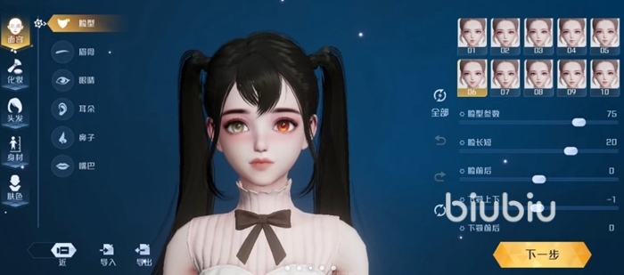 下面小編先為大家分享一套非常不錯的女角色捏臉數(shù)據(jù)。臉型04、臉型參數(shù)75、臉長短20、臉前后0、下顎上下-1。眉毛高度設(shè)置為-19、眉毛角度設(shè)置為-21。眼睛05、眼型參數(shù)28、眼睛高度-14、眼間距-3、眼睛突出-6、眼睛大小1。耳朵04、耳型參數(shù)75、耳朵大小和角度全部為0。鼻子04、鼻型參數(shù)75、鼻子高度1、鼻子前后19。