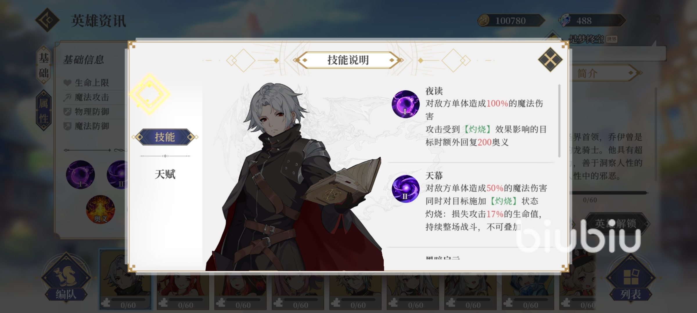 專屬魔法技能類:夜讀:對敵人單體造成魔法傷害,并且附帶灼燒的時候可以額外恢復(fù)奧義。