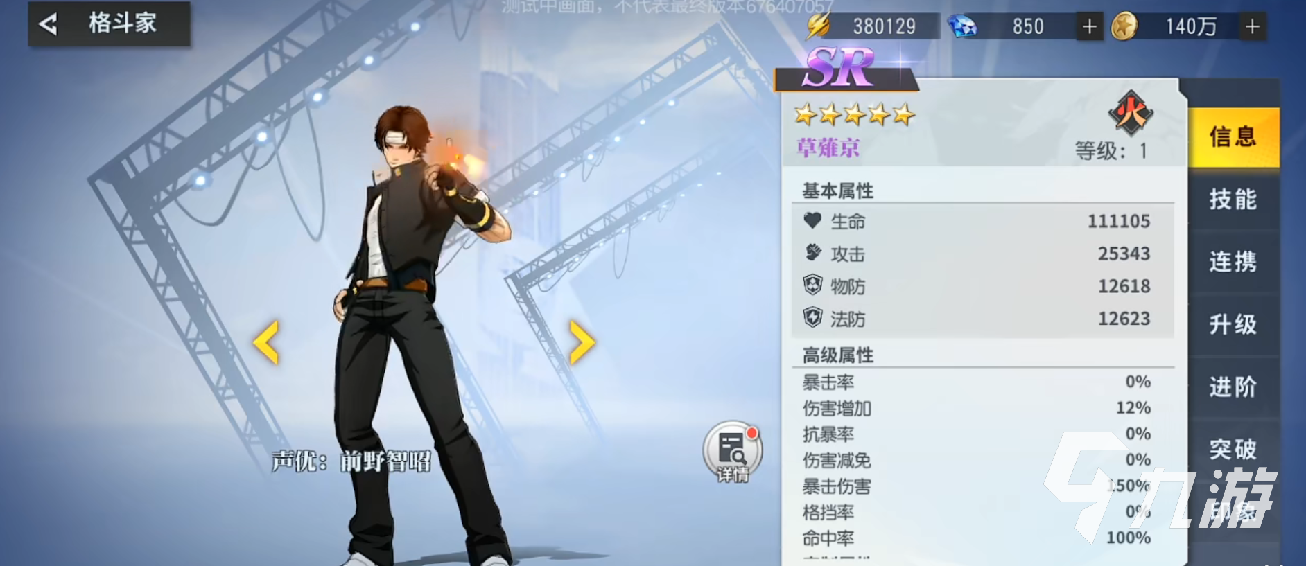 說回陣容方面,由草薙京、千鶴、大門五郎、李烈火、二階堂和露露組成。草薙京的強度有目共睹,其超高的傷害可以給全隊不俗的輸出。獲得的難度不高,參加活動就可以獲得,而且在之后的熾陽覺醒之路中可以獲得120的碎片??梢宰屍涿赓M的從sr升到ur,還是不錯的。