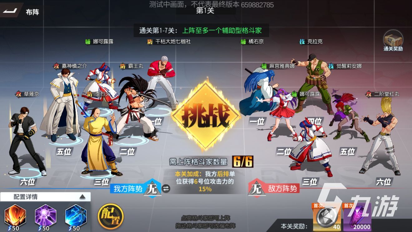 一般這個每關(guān)都有不一樣的敵人以及加成,具體案例具體分析。比如說3v3,對面是鬼克里斯、二階、草薙,我們則可以直接擺上刺客或者戰(zhàn)士,例如八神、鬼八、牙神、鬼莉安娜等等。如果是6v6的莉姆露露前排陣容,我們則需要先處理掉對面加血加盾的角色。