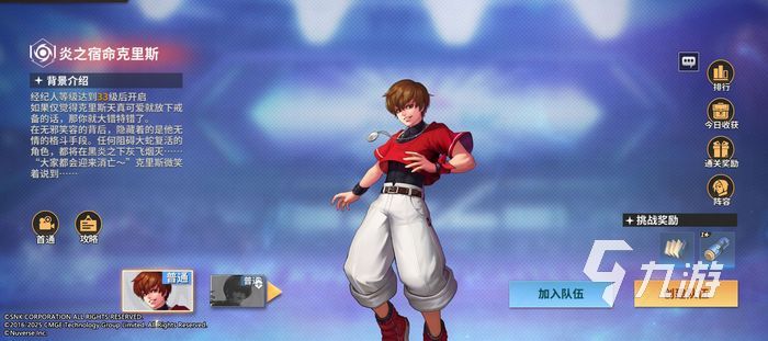 此外大家也可以選擇混合流的玩法,選擇K/草薙京/大門作為陣容的組成角色,然后援護(hù)角色大家使用克拉克還有特瑞即可。這套陣容的傷害非常多,K/草薙京可以打出火屬性的灼燒傷害,同時(shí)輸出強(qiáng)度不俗。