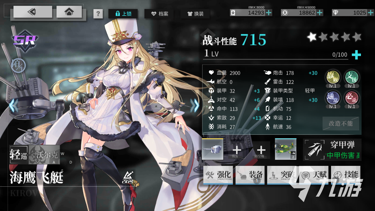 海鷹飛艇這個艦靈的品級是SR級別的,這個級別也算是目前相對好用的一個設(shè)定。在定位上海鷹是一個輕巡艦,輕巡艦的話在機動能力上還是不錯的,傷害方面的話會有一些不足。彈藥的話使用的是穿甲彈,對于一些重甲的敵人會有不錯的傷害加成。