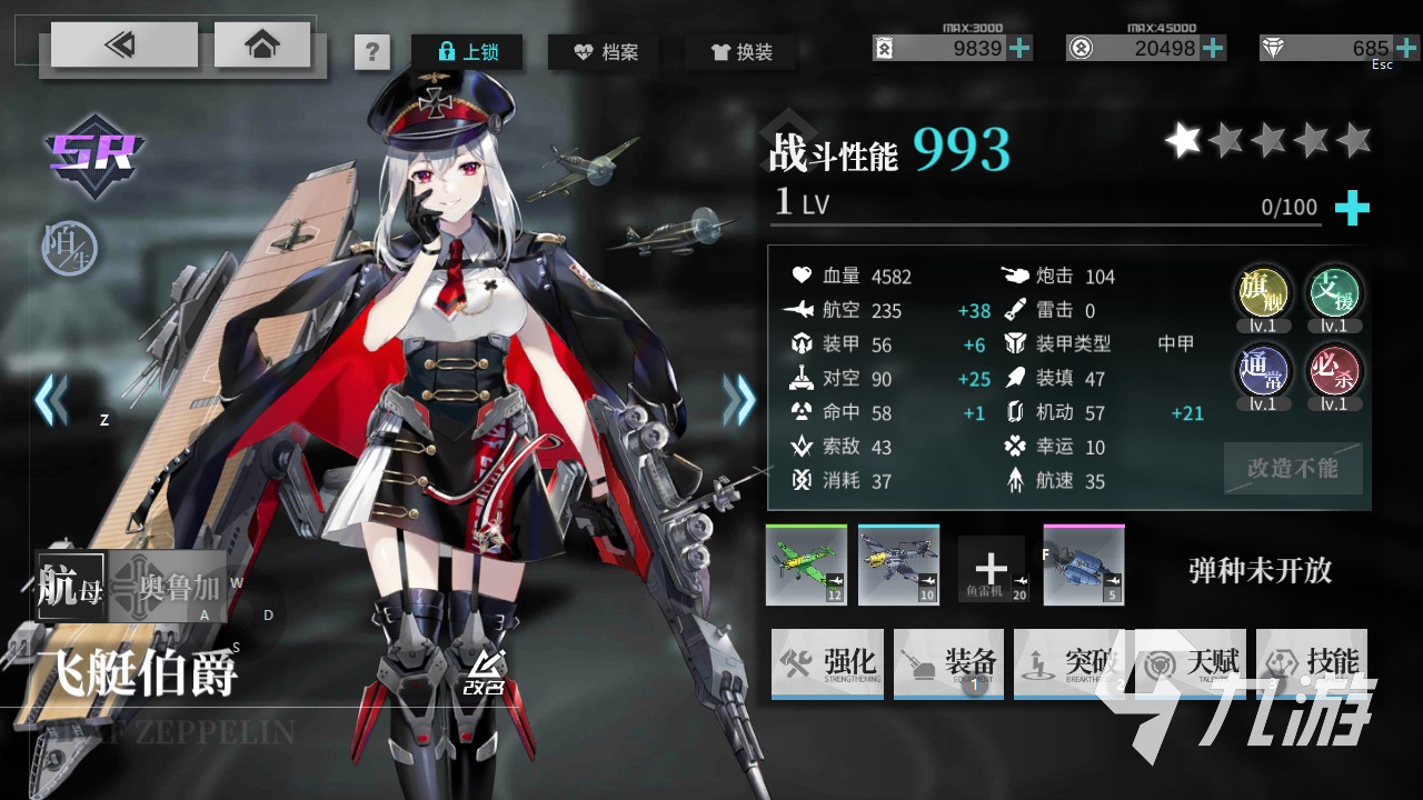 飛艇伯爵這個(gè)艦靈的品級(jí)是SR級(jí)別,品級(jí)的看起來(lái)還是很不錯(cuò)的。在定位上是一個(gè)航母,航母的話在實(shí)戰(zhàn)中說(shuō)實(shí)話用的還是比較多的,而且輸出能力是很優(yōu)秀的。在基礎(chǔ)屬性上,伯爵的航空、裝甲、對(duì)空和命中能力都是不錯(cuò)的,這些屬性也都是航母艦靈所需要的。