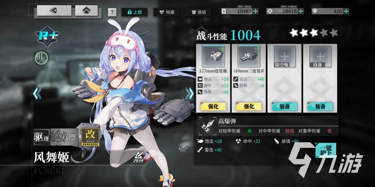 風(fēng)舞姬的職業(yè)是驅(qū)逐,裝備上能夠攜帶四個(gè),兩個(gè)防空炮和一個(gè)魚雷以及一個(gè)偵察機(jī),除此之外,風(fēng)舞姬自身還有一個(gè)被動(dòng)技能,那就是高爆彈,對(duì)輕甲的傷害很高。裝備的建造或者是強(qiáng)化都是有等級(jí)限制的,所以在R+級(jí)中,風(fēng)舞姬的培養(yǎng)是絕對(duì)不虧的。