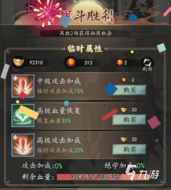 當(dāng)你的武林高手擊敗對方的角色后,會為自己增加兩點(diǎn)積分并扣除對方一點(diǎn)積分。最后將對面六名高手全部擊敗后,就可以獲得這場擂臺的勝利了。