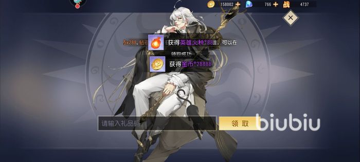 然后可以看到有禮品碼的按鈕,大家點(diǎn)擊之后輸入上面的兌換碼就可以領(lǐng)取道具了,需要注意的是禮包碼里面的英文都是小寫,大家記得別輸錯(cuò)了。