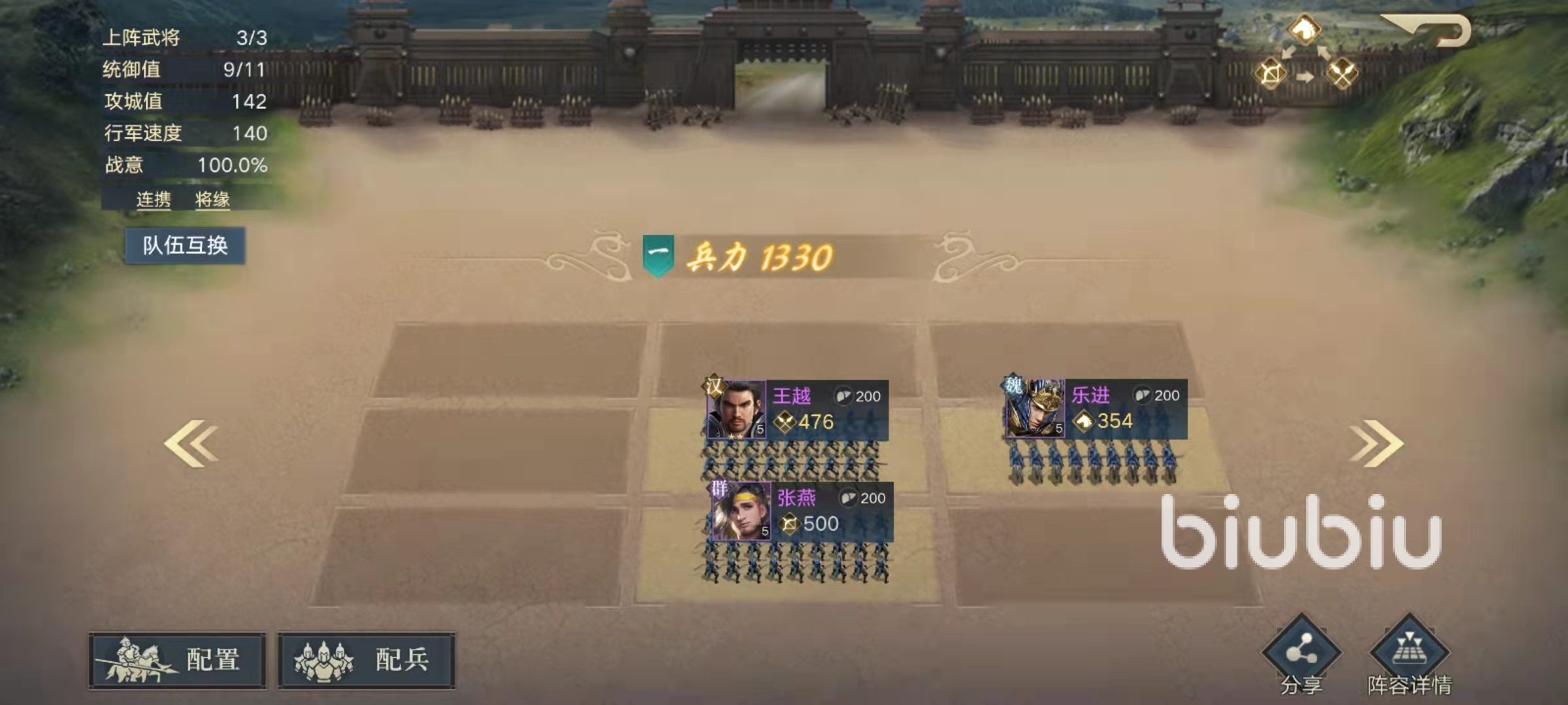 再就是發(fā)展的思路,前期已種田為主,不要先去打架,前期是搶不來什么資源的。配將方面也是先撿能用的上,老老實(shí)實(shí)的先把大殿升級(jí)起來,把統(tǒng)御值提高上去,然后在去有目的的培養(yǎng)陣容,這樣新手期間才能不浪費(fèi)時(shí)間,以最快的速度發(fā)展。