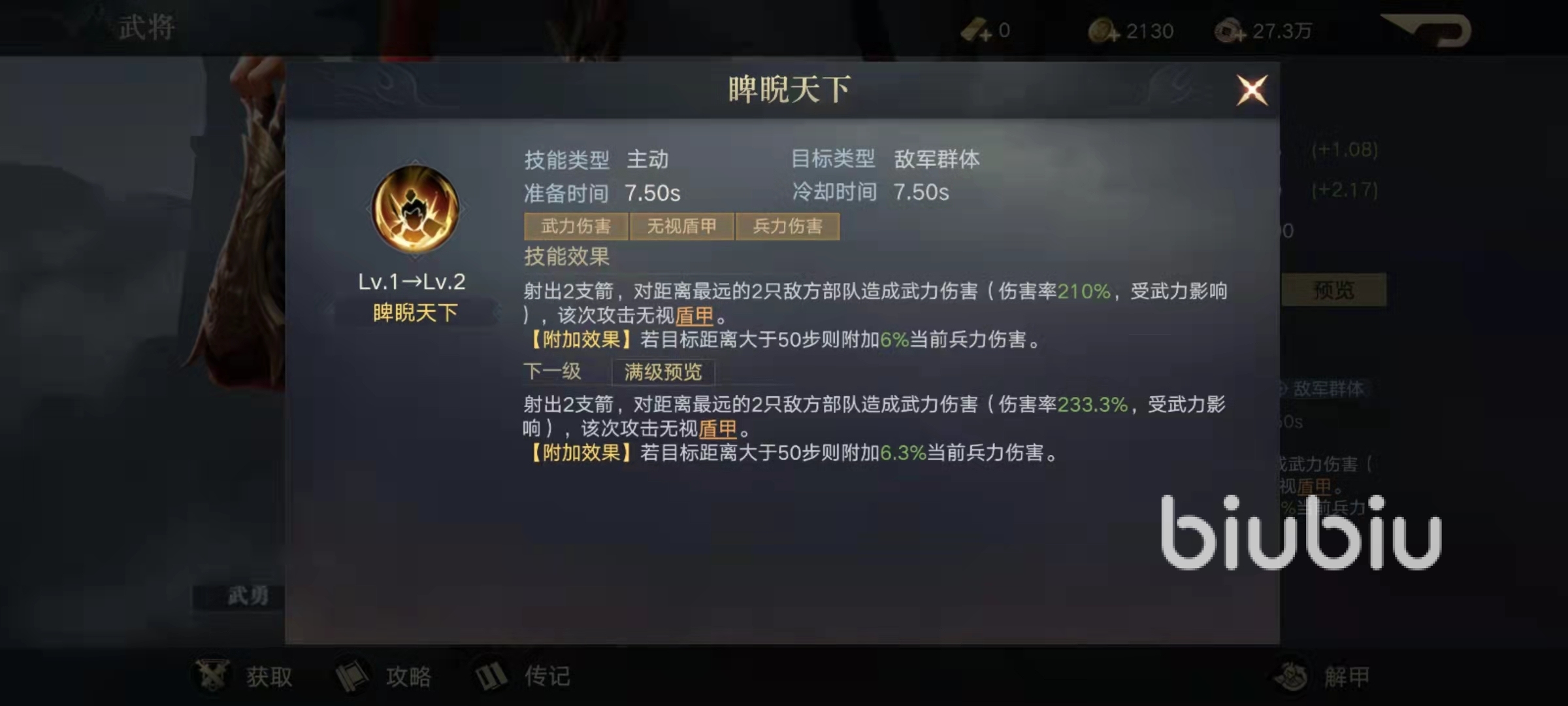 呂布的自帶技能是睥睨天下,效果是可以射出兩只箭,直接傷害距離呂布最遠(yuǎn)的兩只敵方軍隊(duì),并且這一次攻擊是無(wú)視對(duì)方的盾甲效果的。如果傷害目標(biāo)距離呂布的距離超過(guò)了五十步,則還能帶來(lái)額外的傷害。盾甲的效果是可以抵擋所有傷害,是所有的防御狀態(tài)中最難纏的,但是呂布直接無(wú)視這個(gè)效果,也就是這個(gè)技能傷害基本上是無(wú)法避免的。
