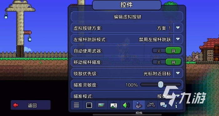 我們打開游戲進(jìn)入到游戲的主菜單界面,然后點(diǎn)擊設(shè)置進(jìn)行到泰拉瑞亞手游的設(shè)置選單上,之后我們點(diǎn)擊控件,這里可以看到自動(dòng)使用武器的功能,我們將其點(diǎn)開就可以了。再次返回游戲,我們長按開火鍵就會(huì)發(fā)現(xiàn)支持自動(dòng)揮舞的武器能夠正常使用了。