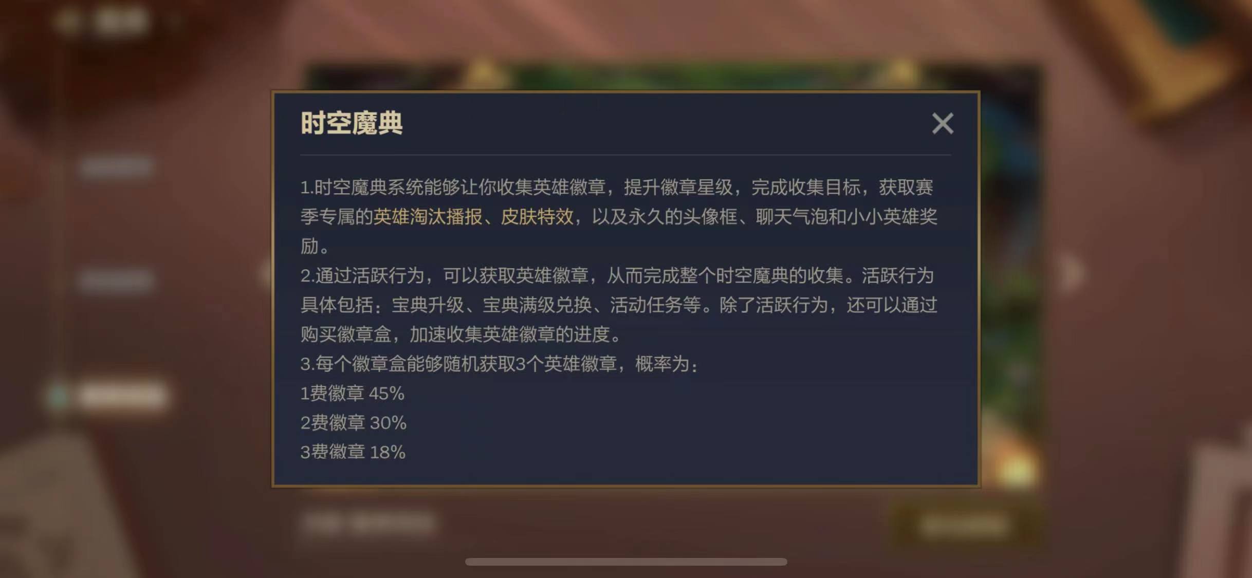 1、時(shí)空魔典系統(tǒng)是最近在金鏟鏟里面更新出來的全新玩法,小伙伴們需要通過不斷的提升徽章的星級來獲取到相應(yīng)的獎(jiǎng)勵(lì)。
