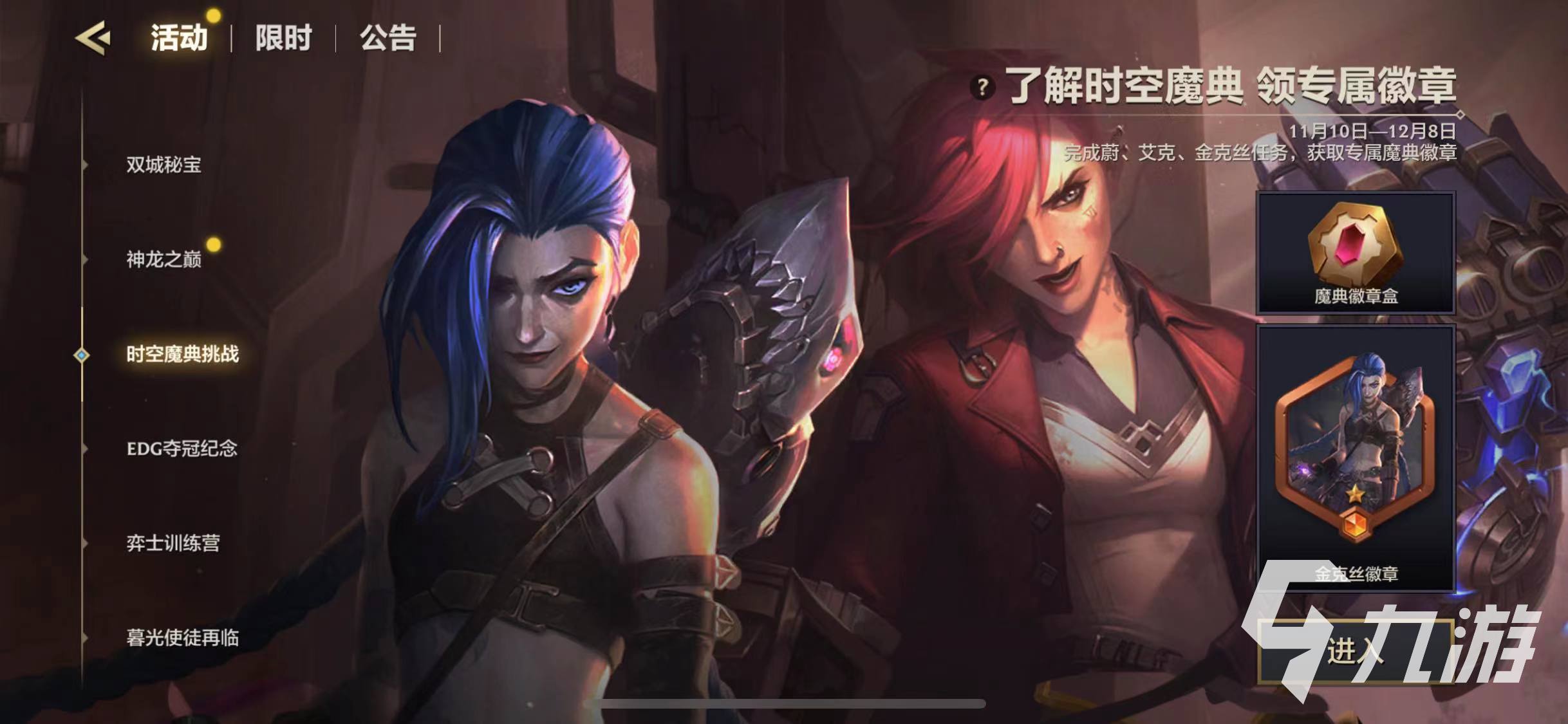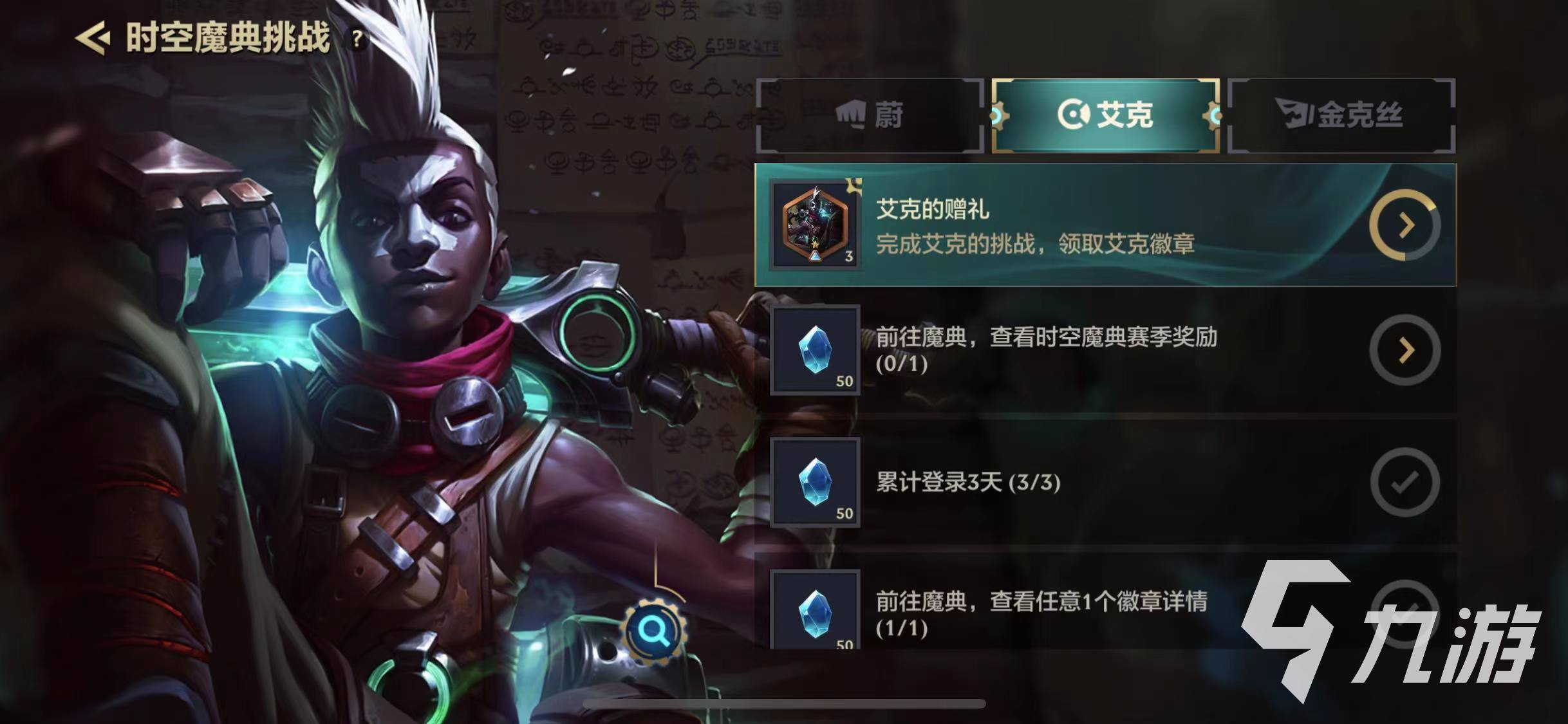 5、大家也可以通過完成蔚、金克絲、艾克任務(wù)來獲取到專屬的魔典徽章,并且大家在完成任務(wù)的過程中還能獲取到大量的藍(lán)色寶石,憑借著藍(lán)色寶石大家可以去為自己的小小英雄企鵝進(jìn)行升星哦。
