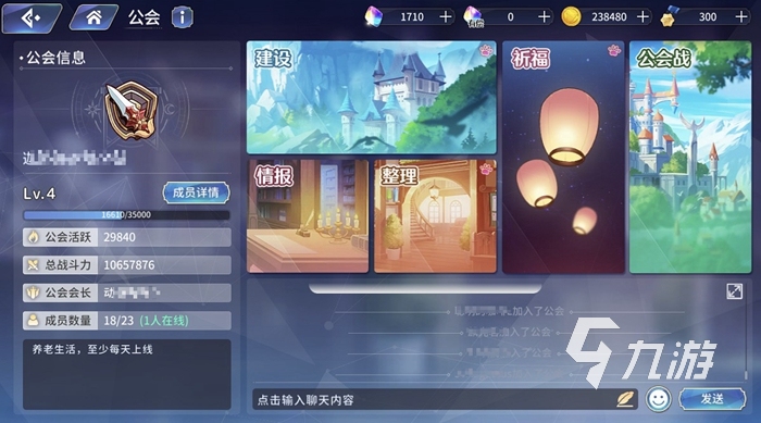 在加入公會之后我們點擊進去可以看到公會的諸多功能。分別是建設、情報、整理、祈福以及公會戰(zhàn)。在建設中我們可以消耗金幣或者是鉆石就可以對公會進行建設,從而獲得冒險徽章以及冒險經驗了,另外也可以提升公會的活躍度。在公會情報中我們可以看到目前的公會排行以及排行榜上強力公會的信息。通過公會整理,我們可以獲得金幣獎勵,也有一定的概率獲得鉆石哦,公會整理在每日的5點更新。