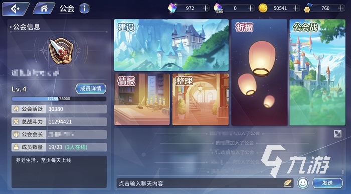 第二步:進(jìn)入公會界面中我們不僅可以看到公會的基本信息以及玩法,在左側(cè)還可以看到一個(gè)成員詳情的按鈕;