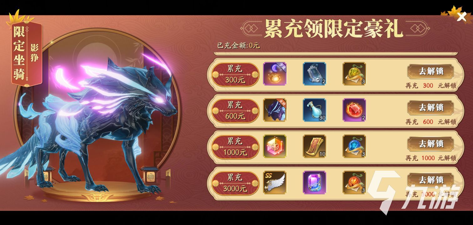 首充福利:對于一些平民玩家來講,在前期完成首充,可以快速幫我們獲取一些絕版的高級裝備,在幻世九歌也是如此,只要完成首充任意金額,前三天就可以免費領(lǐng)取戰(zhàn)靈,喚靈書,以及其他的培養(yǎng)材料,總共價值高達1800靈玉,還是很劃算的。